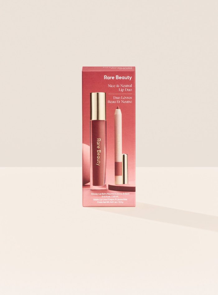 Limited Edition: A universal neutral lip combo for a low-key look you can wear anywhere. with a full-size Stay Vulnerable Glossy Lip Balm in Nearly Neutral and mini Kind Words Matte Lip Liner in Patient (set exclusive).