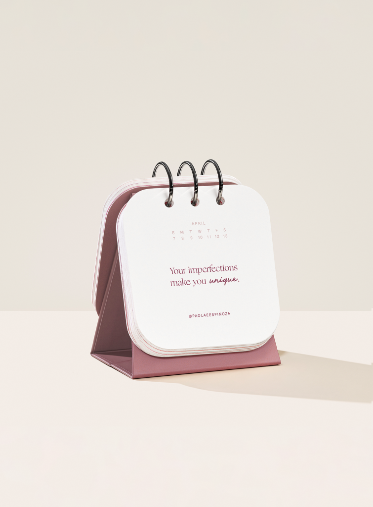 A weekly mini 2024 flip calendar featuring empowering affirmations from the Rare Beauty community —including some of Selena’s faves!